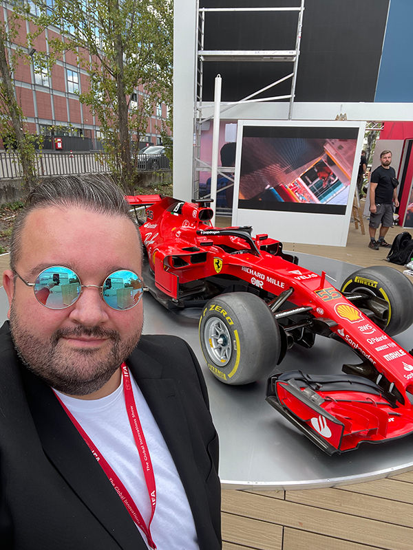 Qualcomm Der Chiphersteller brachte als Sponsor einen originalen Formel 1-Wagen der Scuderia Ferrari mit auf die IFA. Motorsportfan Christoph Lumetzberger ließ es sich nicht nehmen, die rote Göttin zum Selfie zu bitten.