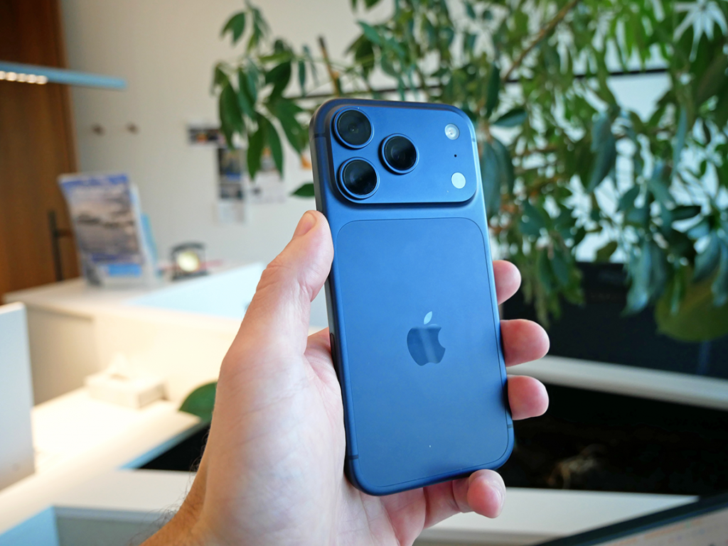 Das Design des iPhone 17 Pro wurde komplett neu gestaltet. Neben dem Kamerablock sticht auch der gläserne Bereich auf der Rückseite ins Auge.