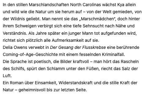 Prompt: Du bist Redakteurin eines Buch-Newsletters. Stelle das Buch „Der Gesang der Flusskrebse“ kurz und spannend vor. Max. 6 Sätze, im literarischen Ton, neugierig machend.*
