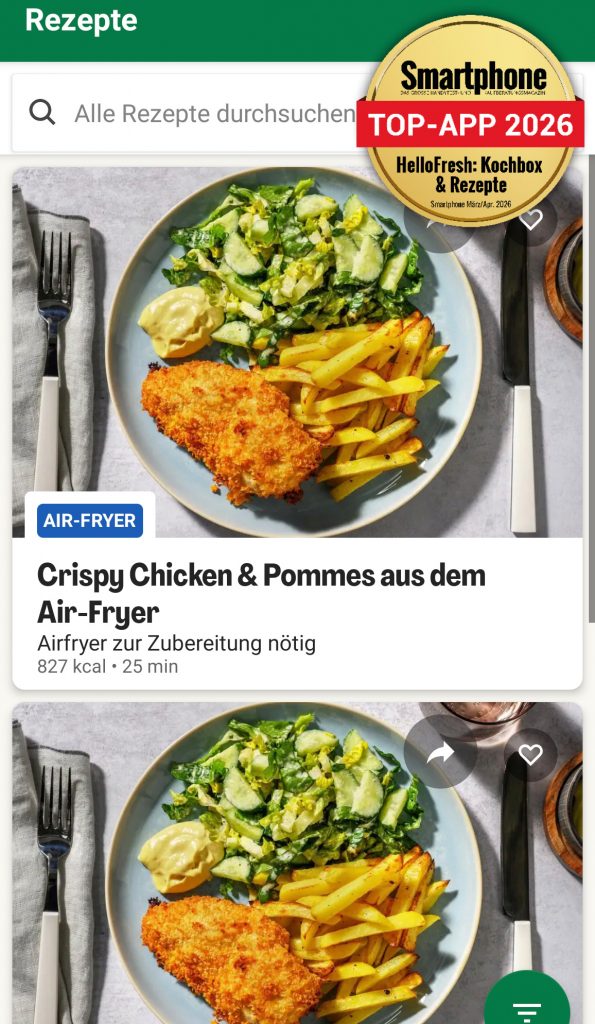 Die HelloFresh Kochapp dient als zentrale Plattform zur Auswahl und Verwaltung von Kochboxen. Nutzer können aus einer großen Rezeptdatenbank Gerichte auswählen, speichern oder teilen und ihre Planung mehrere Wochen im Voraus festlegen. Die App stellt zu jedem Rezept bebilderte Anleitungen bereit, die sich auch vorlesen lassen. Bestellte Boxen enthalten die benötigten Zutaten in passender Menge und werden nach Hause geliefert. Unterschiedliche Ernährungsweisen und Schwierigkeitsstufen lassen sich bei der Rezeptauswahl berücksichtigen, ebenso spezielle Vorlieben wie vegetarische oder vegane Küche. Lieferungen können flexibel angepasst, pausiert oder beendet werden.