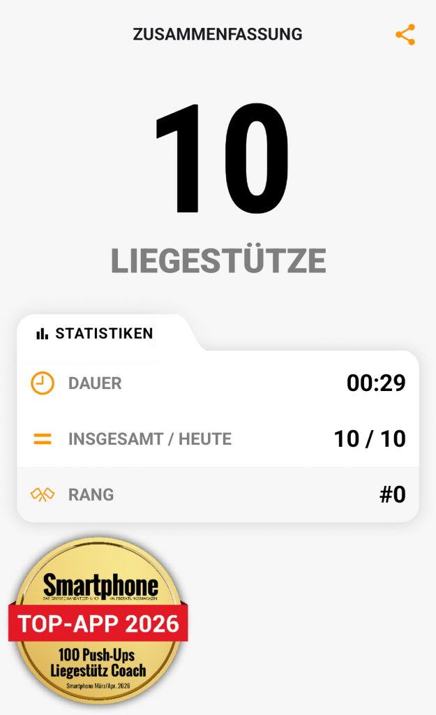 Dieser Liegestützcoach richtet sich an all jene, die ihr Liegestütztraining systematisch aufbauen möchten. Die App umfasst strukturierte Trainingspläne, die schrittweise von wenigen Wiederholungen bis zu höheren Zielen führen. Die Liegestütze werden dabei automatisch mithilfe des Näherungssensors im Smartphone oder per Displayberührung gezählt. Um motiviert zu bleiben, werden die persönlichen Fortschritte mithilfe von Statistiken und Bestenlisten veranschaulicht. Zusätzlich können individuelle Ziele definiert und Erinnerungen eingerichtet werden, um das Training regelmäßig in den Alltag zu integrieren.