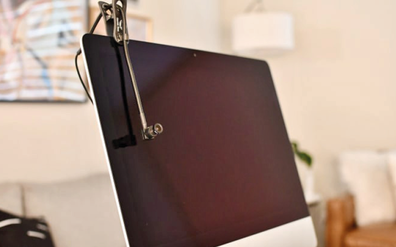 Abhilfe schafft da die Center Cam. Diese Kamera lässt sich mit Hilfe einer anklemmbaren Halterung in der Mitte des Bildschirms platzieren. Da die Centér Cam recht klein ist, verdeckt sie nicht störend viel des Bildschirms. Benötigt man die Kamera kurzzeitig nicht, dann lässt sie sich sinnvollerweise zur Seite bewegen. Die Klemmhalterung ist gummiert, so dass sie den Bildschirm nicht beschädigt.