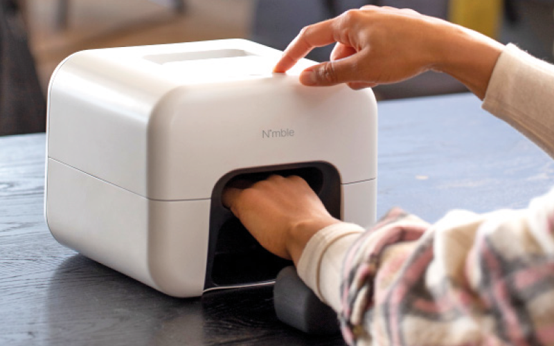Nimble lackiert Ihre Fingernägel ganz automatisch – dank hochauflösender Kameras und eines kleinen Roboterarms. Jeder Nagel erhält eine Grundierung, zwei Farbschichten und eine Deckschicht. Das Lackieren und Trocknen ist in zehn Minuten pro Hand erledigt.