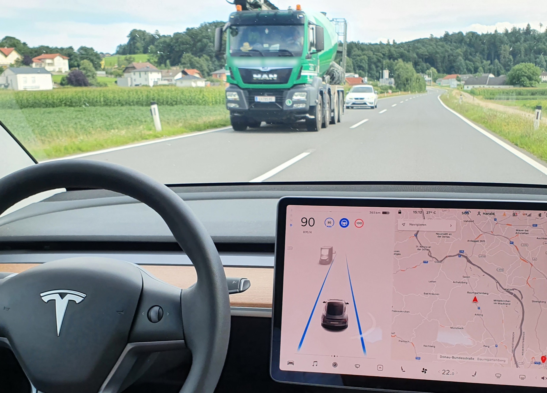Der Tesla ist nicht nur in der Lage, vollständig autonom sich im Straßenverkehr zu bewegen, er erkennt auch Hindernisse, die im Umfeld des Wagens auftauchen und bildet diese zudem im Informationsbildschirm des Infotainmentsystems ab. Ist die Selbstfahren-Funktion aktiv, müssen Sie im Prinzip nicht mehr viel Arbeit am Steuer verrichten. Einzig von Zeit zu Zeit muss das Lenkrad bewegt werden, damit der Wagen weiß, dass sie ihm noch genügend Aufmerksamkeit schenken. Bremst jemand vor Ihnen, so tut das der Tesla auch. Kommt der Wagen vor Ihnen zum Stillstand, bleibt auch das Model 3 stehen. Außerdem erkennt die Software Verkehrszeichen, die am Straßenrand stehen, und richtet sich danach.
