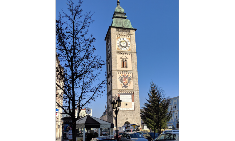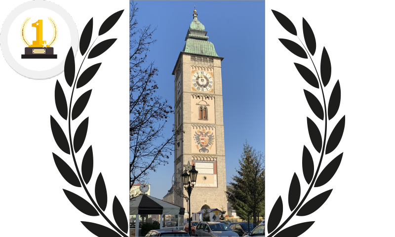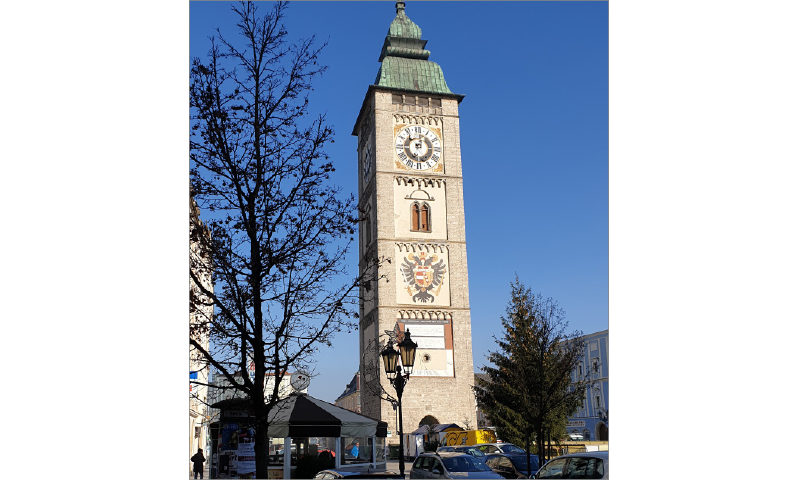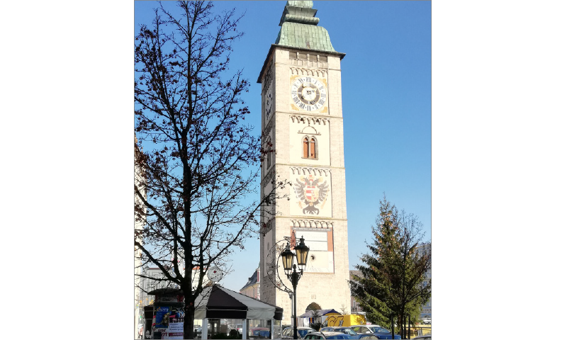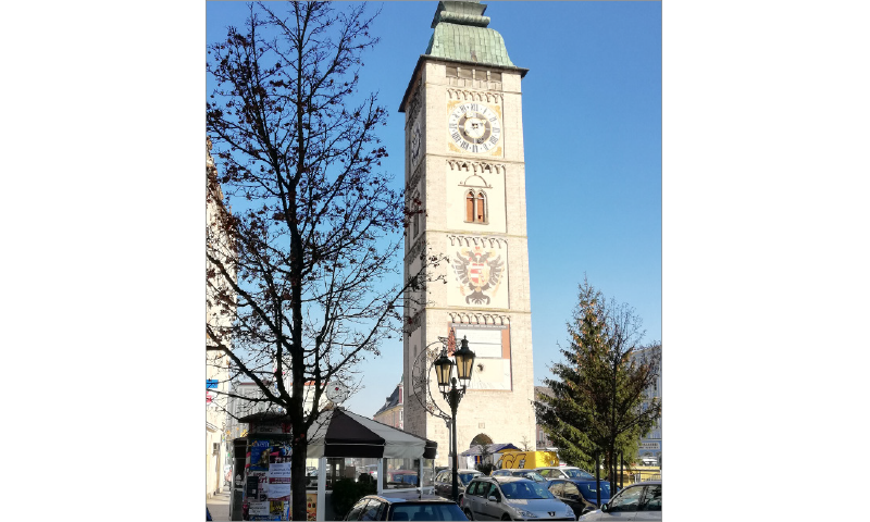 Die Situation: Wir schlenderten an einem sonnigen Herbsttag durch die Altstadt von Enns in Österreich und wählten den Stadtturm auf dem Hauptplatz als Motiv für unseren Landschaftstest.