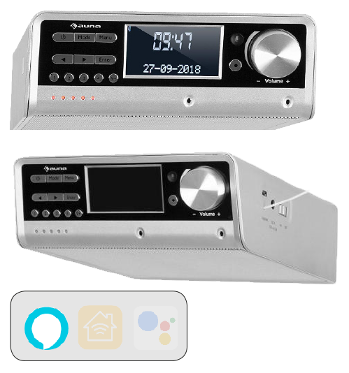 Das smarte Küchenradio kann mit der mitgelieferten Unterbauvorrichtung mühelos unterhalb von Küchenschränken und -regalen angebracht werden. Mithilfe der eingebauten DAB+ und FM Antenne sowie des TuneIn-Streaming-Dienstes können Sie neben analogen Radiosendern auch tausende Sender aus aller Welt digital empfangen. Dank der Alexa-Sprachsteuerung steht Ihnen die gesamte Welt des smarten Sprachassistenten auch in der Küche zur Verfügung.