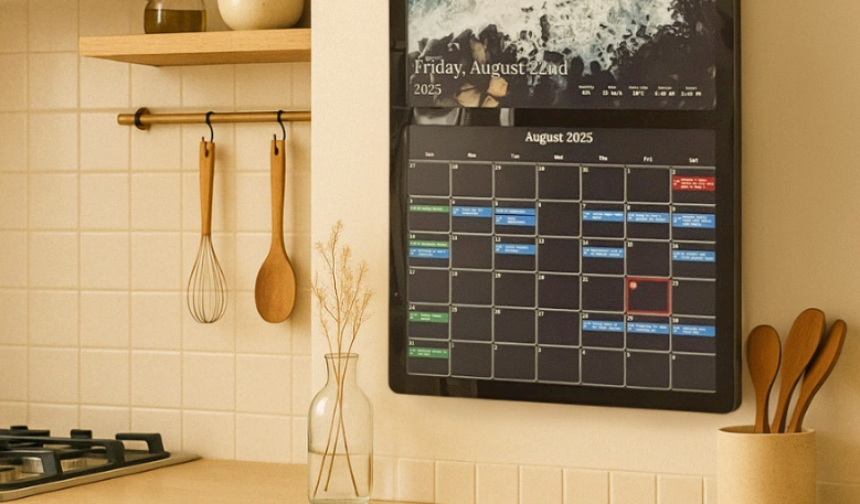 Der Wandkalender eInkCal Mark II besteht aus zwei 13,3-Zoll-Farbbildschirmen, die digitale Tinte verwenden und daher so wenig Strom verbrauchen, dass eine Akkuladung für einen Betrieb von über zwei Monaten ausreicht. Der Kalender kann seine Termine mit dem Google-Kalender synchronisieren, zeigt eine Monatsansicht und hält auch Wetterinformationen bereit. Bislang ist dieser nur in Form einer Bauanleitung plus dazugehöriger Software verfügbar. In Zukunft soll aber auch eine gebrauchsfertige Ausführung erhältlich sein. bit.ly/eInkCal_Mark