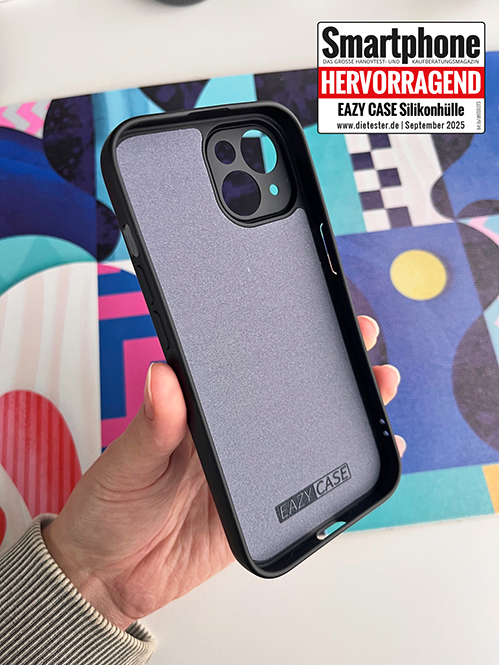 Die EAZY CASE Silikonhülle kombiniert TPU und Silikon, wodurch sie flexibel, leicht und dennoch stabil wirkt. Innen sorgt eine weiche Mikrofaserschicht dafür, dass Stöße abgefedert werden. Die Kanten sind leicht erhöht, sodass die Kameralinsen besser vor Kratzern geschützt sind. Im Alltag lässt sich die Hülle einfach anbringen und wieder entfernen. Aussparungen für Anschlüsse, Lautsprecher und Kamera sind sauber verarbeitet. Fingerabdrücke fallen kaum auf, die Oberfläche fühlt sich angenehm griffig an und lässt sich bei Bedarf leicht reinigen.