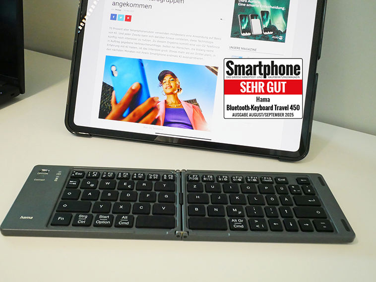 Die Akkulaufzeit überzeugt: Laut Hersteller reicht eine volle Ladung bei täglicher Nutzung von rund zwei Stunden in etwa 35 Tage. Überaus praktisch ist die integrierte KI, die beim Schreiben unterstützt. Diese lässt sich mit nur einem Tastendruck aktivieren. Die Verbindung mit dem mobilen Endgerät klappt schnell und problemlos.