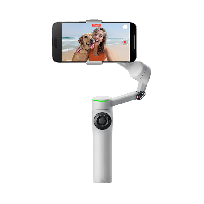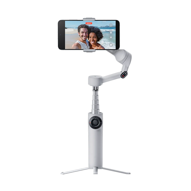 Preis: ab EUR 169,99 / Größe: 97,9 × 178,4 × 36,7 mm (zusammengeklappt) / 121,1 × 282,1 × 54 mm (ausgeklappt) / Gewicht: 357 g / Features: Schwenkt bis zu 360°, KI Deep Track 4.0, Natives iOS Tracking / http://store.insta360.com