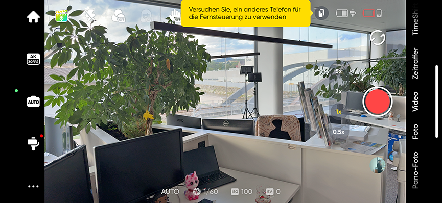 Die Steuerung erfolgt über ein seitliches Drehrad, einen Joystick sowie einen Auslöser-Button auf der Rückseite. Alle wichtigen Modi – darunter Pan-Follow, FPV und Lock – lassen sich direkt am Gerät einstellen. In der Praxis erweist sich die Steuerung als präzise, verzögerungsfrei und ist sehr intuitiv. Besonders positiv fällt die automatische Zentrierung sowie der stufenlose Zoom auf.