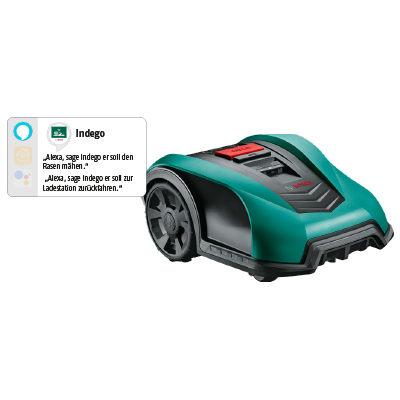 „Indego“ nennt Bosch seine Rasenroboter-Reihe. Das Modell „350“ ist für Rasenflächen von bis zu 350 Quadratmeter geeignet, sein Schneidewerk ist für Schnitthöhen von 30 bis 50 Millimeter und einer Schnittbreite von 19 Zentimeter ausgelegt. Der Akku des „Indego 350“ hält 30 Minuten lang durch und ist in 45 Minuten wieder vollständig aufgeladen. Der Skill heißt schlicht „Indego“ und ermöglicht einige Bedienoptionen per Sprachbefehl.
