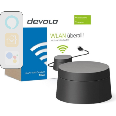 Für das perfekte Internet und volle Alexa-Integration auch im Garten sorgt dieser unscheinbare schwarze Puck. Bis zu 300 Mbit/s erlaubt die Outdoor-Lösung von Devolo, rund 400 Meter lassen sich damit überwinden. Kompatibel mit allen Powerline-Adaptern des Herstellers ist das Gerät in wenigen Augenblicken eingerichtet.